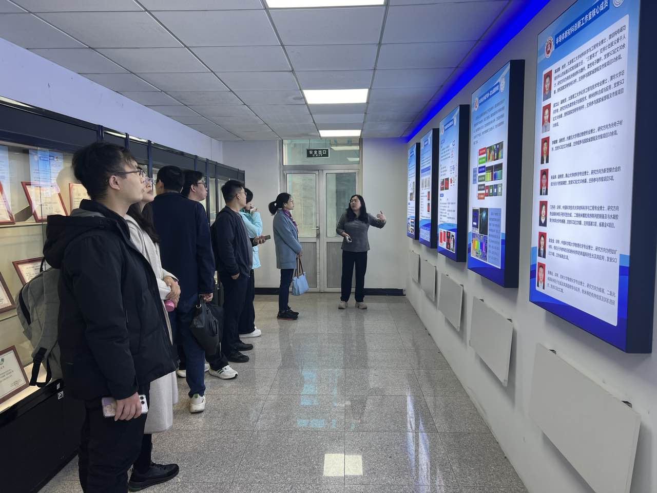 孙建梅一行还实地考察了实验室单元,听取了教师科研人员代表现场汇报,参观了光电子材料与器件实验室相关科技成果展示。